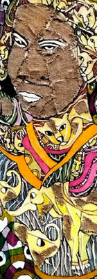 Antonius Kho was born in Klaten, Java, Indonesia, to Chinese parents, draws inspiration from batik patterns, Wayang puppet performances, and daily life. His paintings replicate images that change the original meanings of cultural elements into just visual signs. Critics see these as modern and abstract art, featuring collages, mosaics, and cubist designs. A recurring "eye" in his work symbolizes truth, reflecting his desire to understand life and people. His art showcases the blend and conflict of Eastern and Western cultures, often presenting chaotic representations created by intersecting lines and multiple perspectives. This may mirror his mental state shaped by diverse life experiences and a critical view of societal events. Antonius typically uses paper, rag, and jute, with colors influenced by nature, particularly earthy or yellow tones.